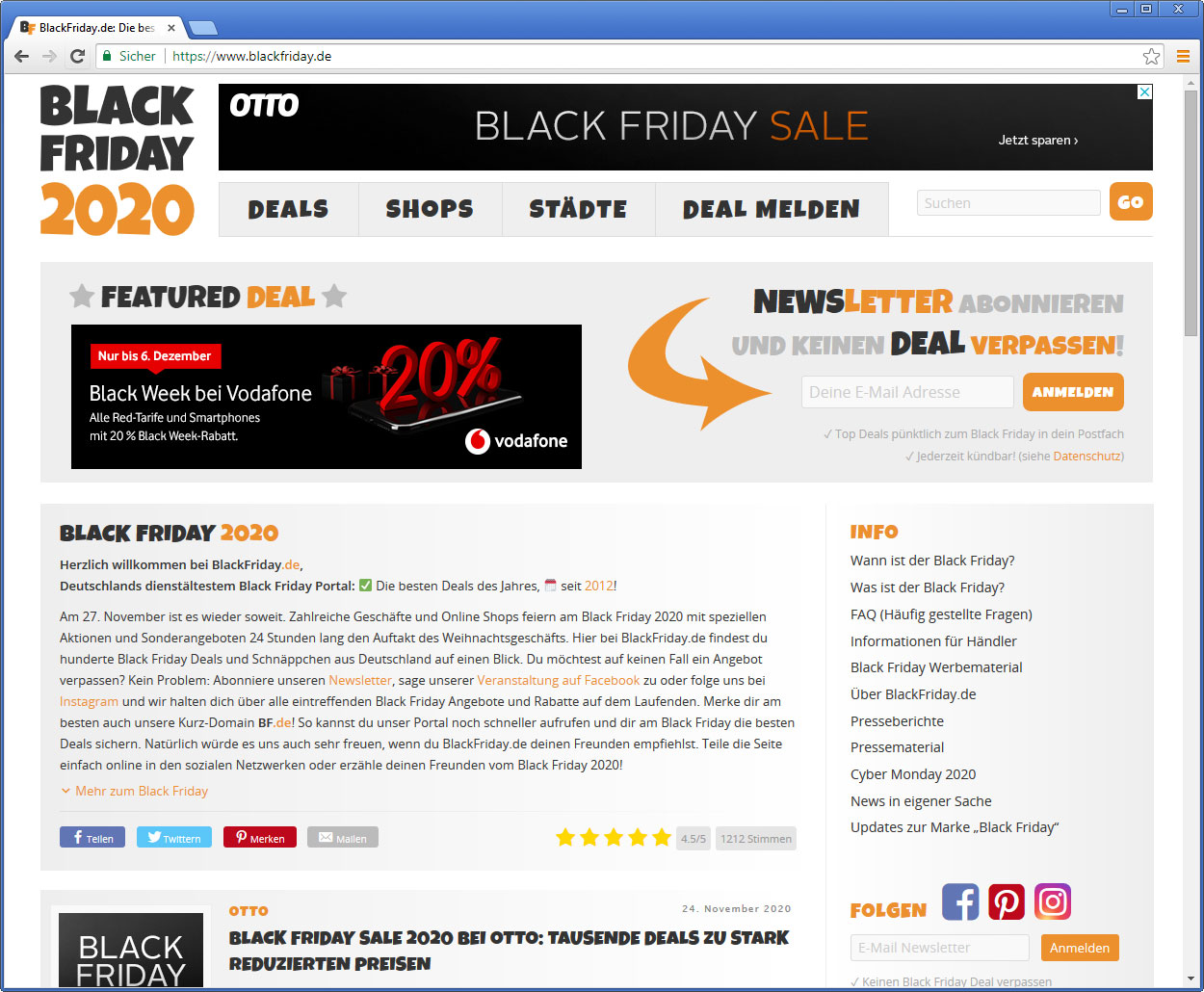 Zudem nahmen wir zum Black Friday 2019 unsere neue Kurzdomain BF.de in Betrieb. Mit der Eingabe von nur 5 Zeichen erreichen Schnäppchenjäger unser Portal nun noch schneller und können sich so die besten Angebote sichern, bevor sie vergriffen sind.